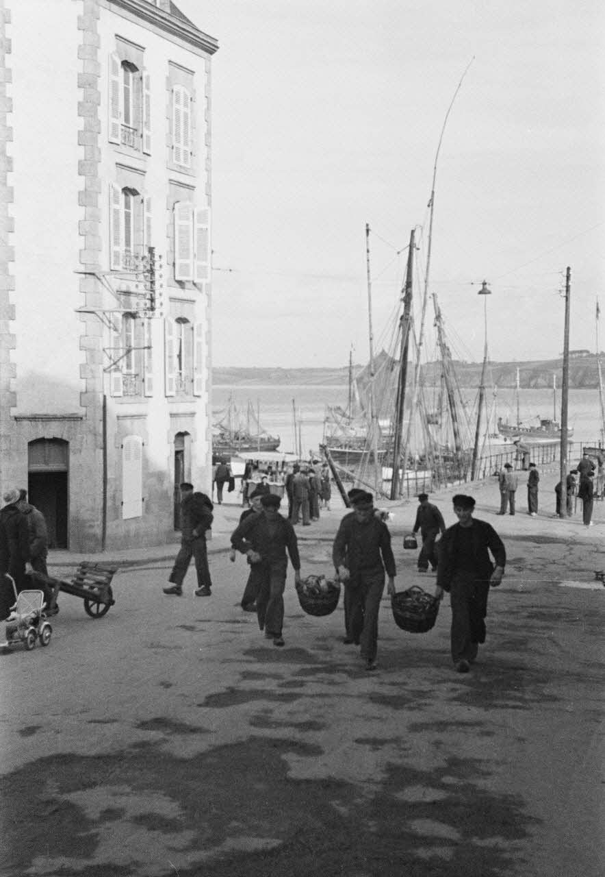 A Douarnenez, les pêcheurs remontent la rue du port avec leur cargaison de poissons.