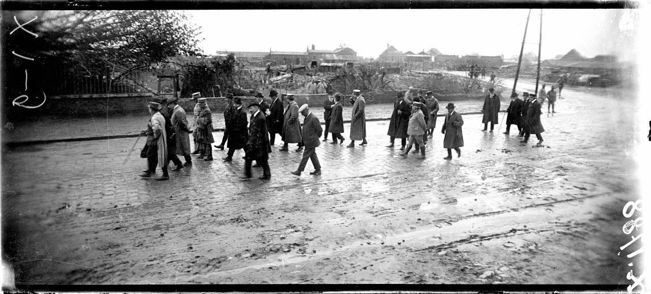 Une mission italienne conduite par le prince Colonna, maire de Rome, visite des villages après le repli de mars 1917.