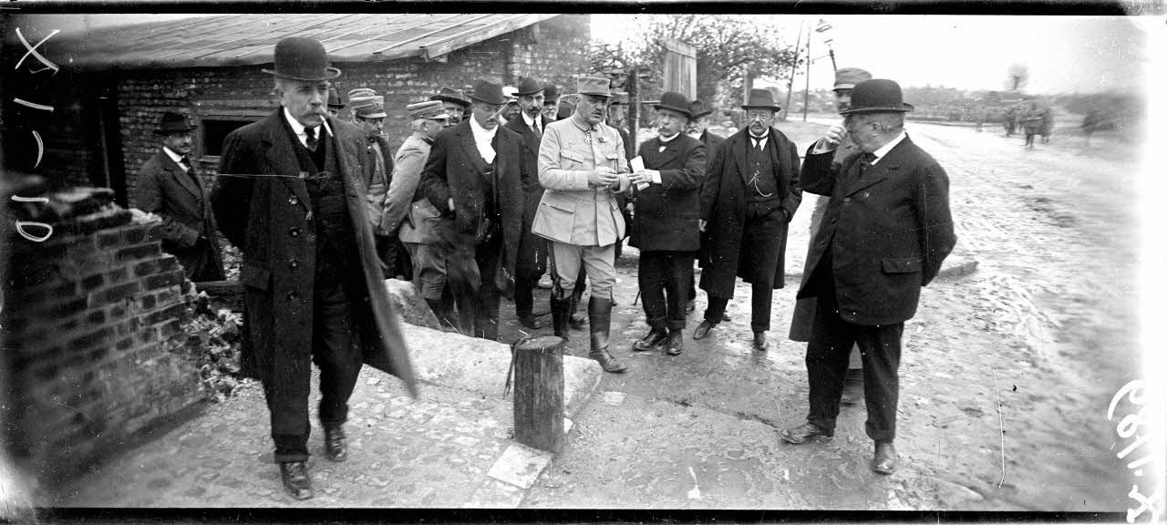 Une mission italienne conduite par le prince Colonna, maire de Rome, visite des villages après le repli de mars 1917.