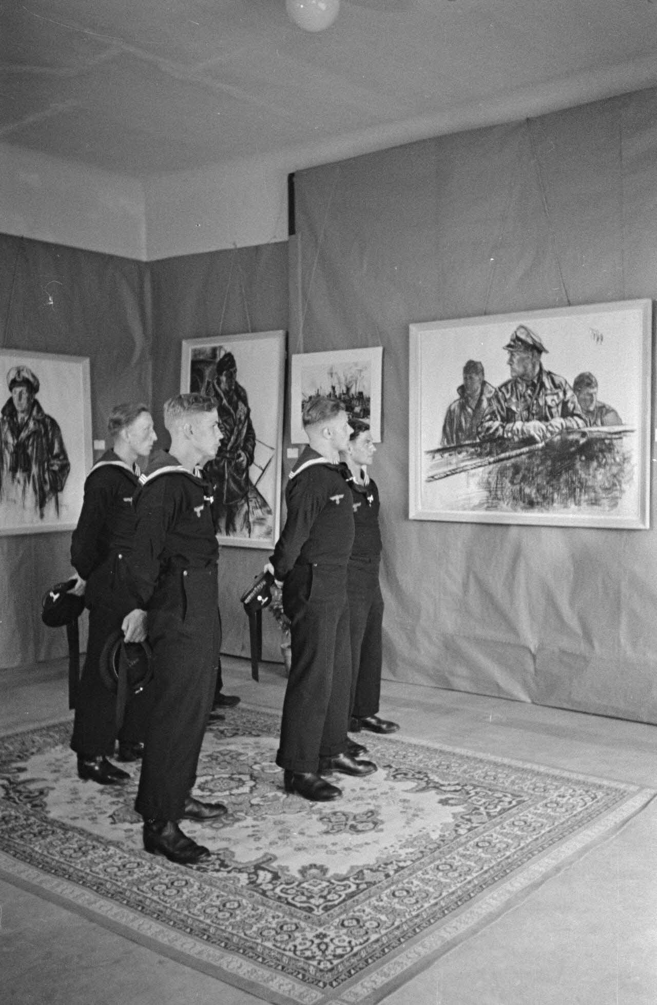 A l'hôtel Royal de La Baule, des marins de la Kriegsmarine visitent une exposition des peintres de guerre.