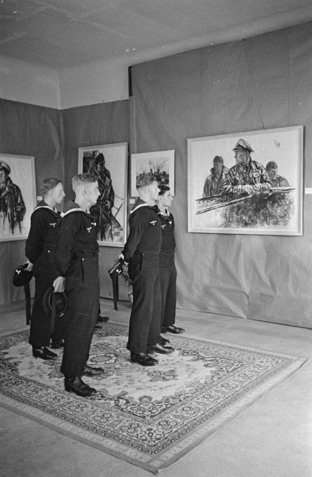 A l'hôtel Royal de La Baule, des marins de la Kriegsmarine visitent une exposition des peintres de guerre.