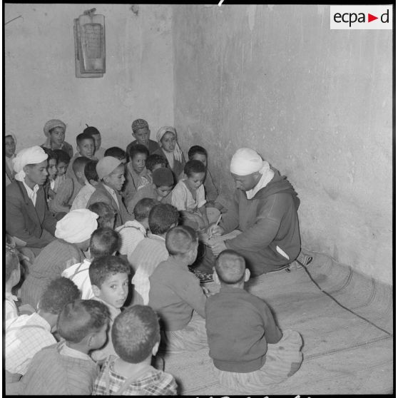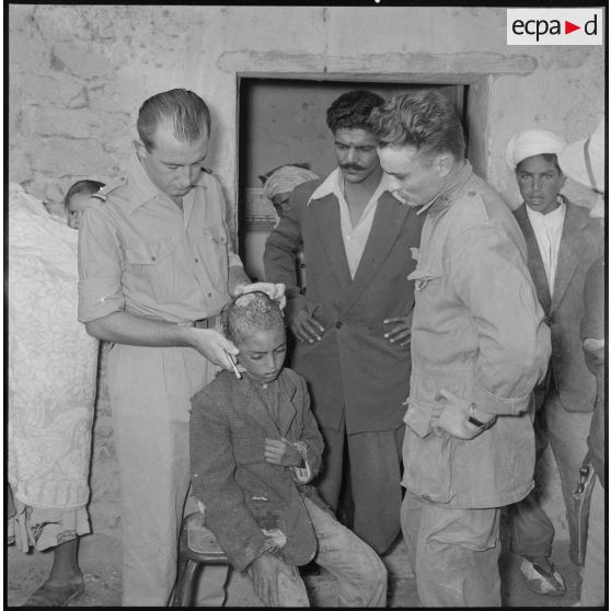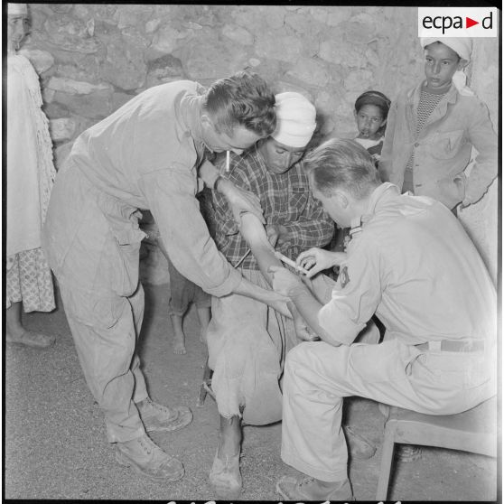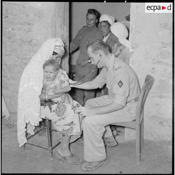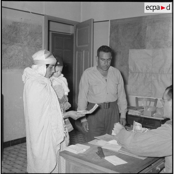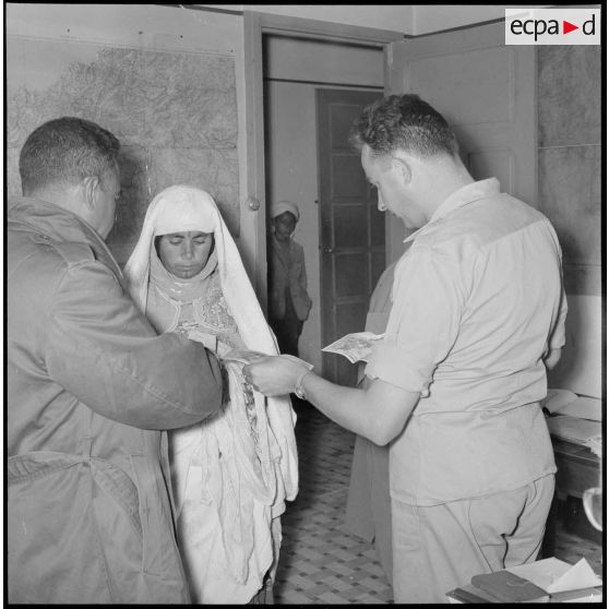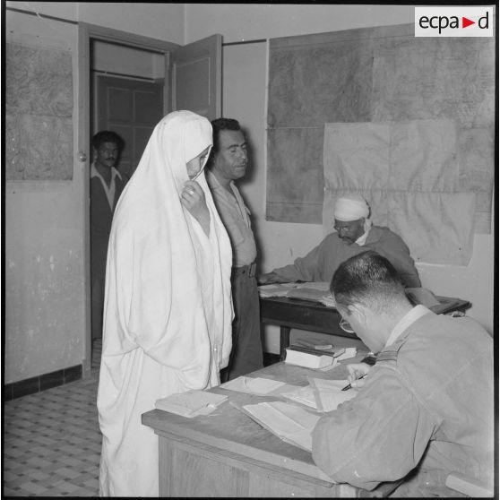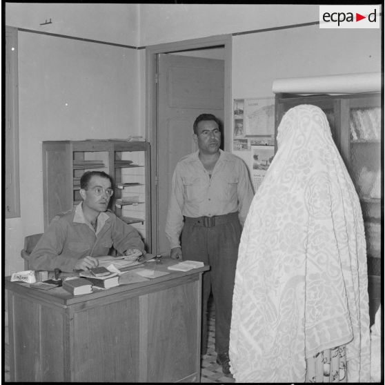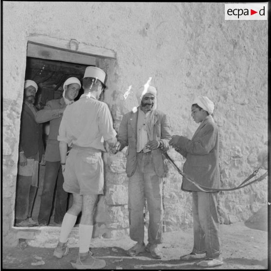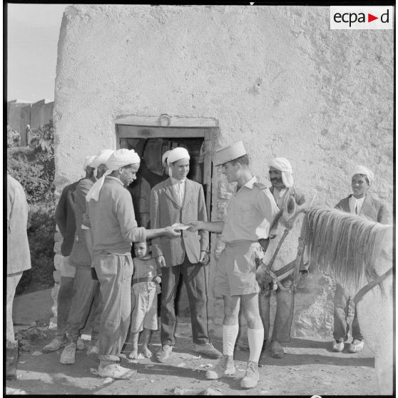 Le chef de poste s'entretient avec la population algérienne.