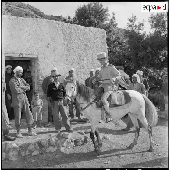 Après avoir discuté avec la population algérienne d'El Haouanet, le chef de poste, retourne à dos de cheval, vaquer à ses occupations.