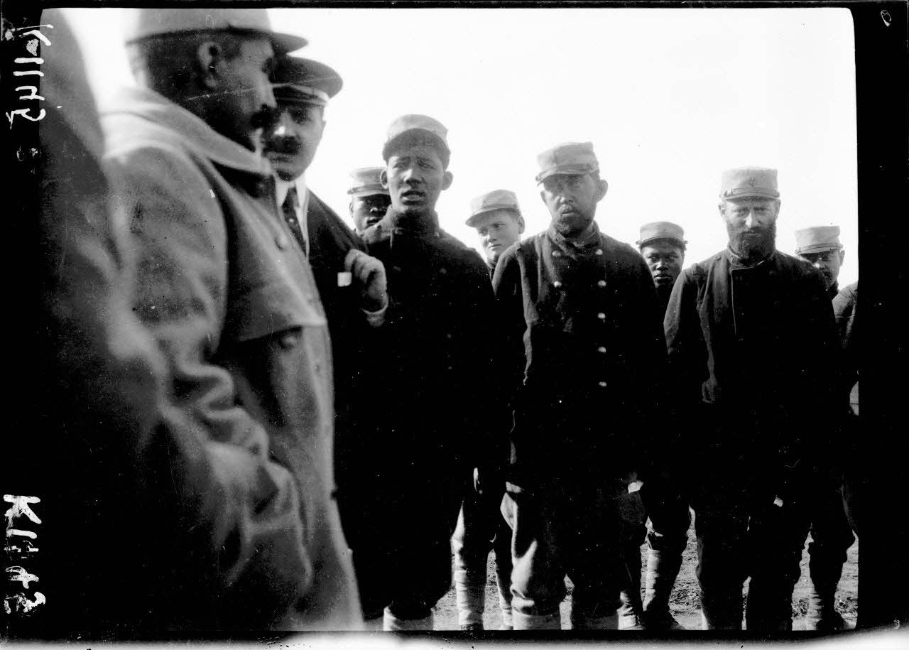 Bâtiments militaires dans la rade de Moudros ; soldats créoles ; décembre 1915.