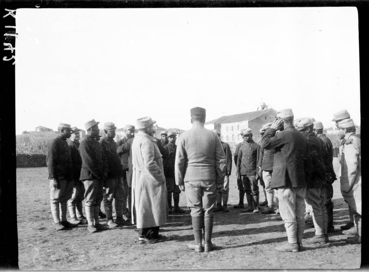 Bâtiments militaires dans la rade de Moudros ; soldats créoles ; décembre 1915.