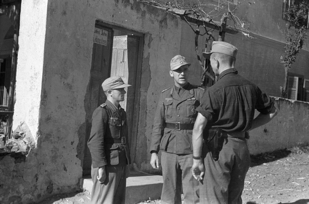 A Leros, des officiers allemands devant l'église d'Aghios Loannis Theologos.