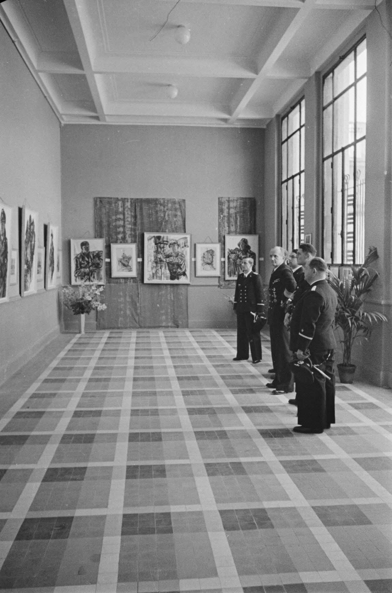 A Lorient dans un bâtiment de l'ensemble réquisitionné pour la 10e Flottille et baptisé Hundius Caserne, une exposition de peintures est installée par les membres de Marine Propaganda-Abteilung West.