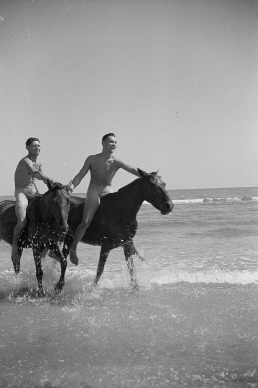 A proximité du terrain de Mamaia, des pilotes roumains du Grupul 9 sur une plage de la Mer Noire.