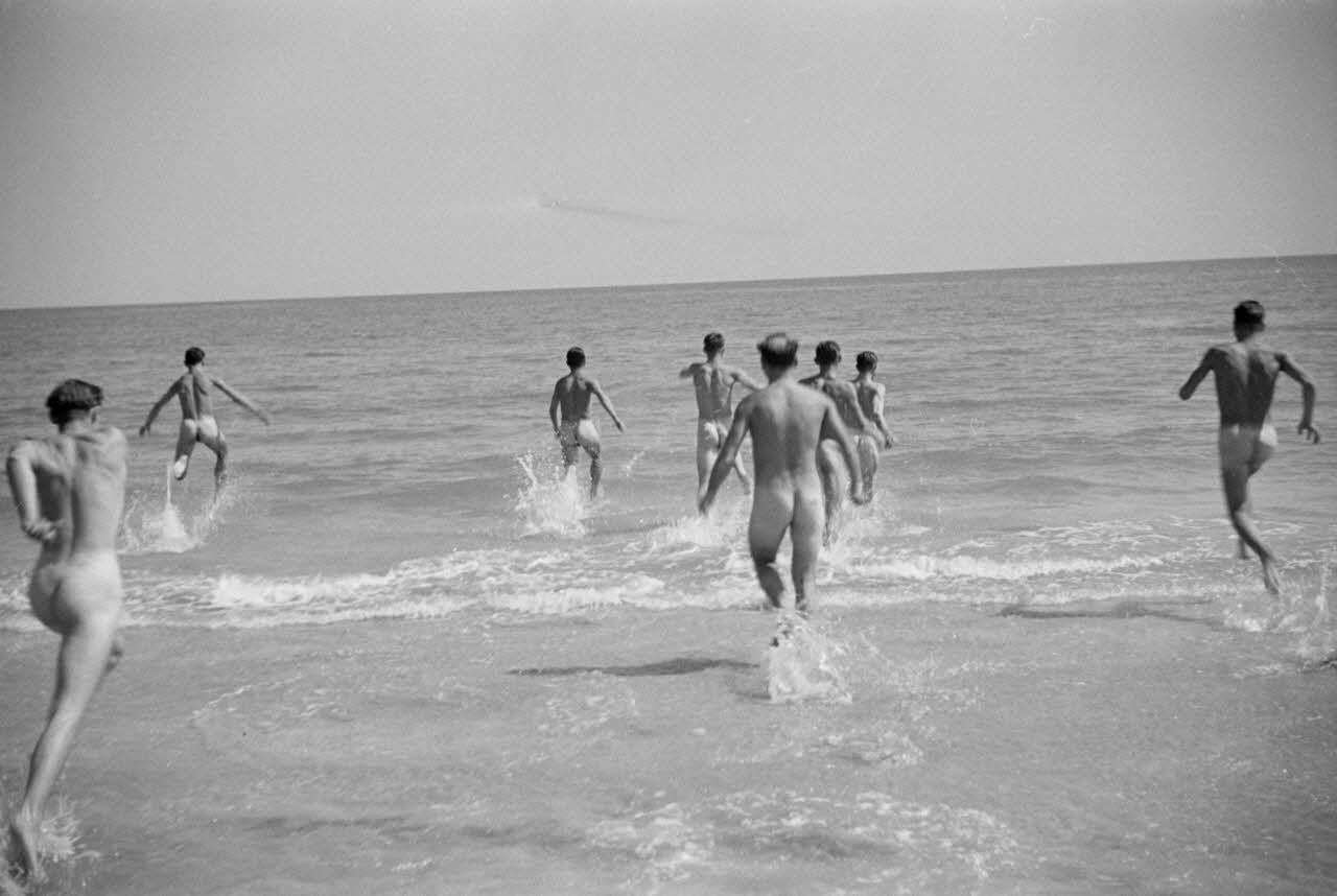 A proximité du terrain de Mamaia, des pilotes roumains du Grupul 9 sur une plage de la Mer Noire.