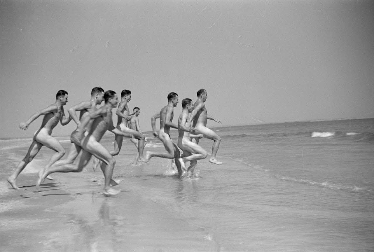A proximité du terrain de Mamaia, des pilotes roumains du Grupul 9 sur une plage de la Mer Noire.