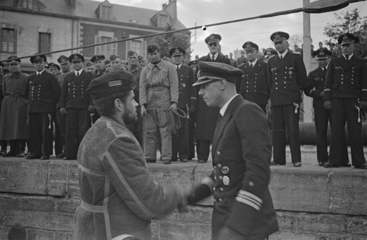A Saint-Nazaire, l'accueil réservé à l'équipage Kapitänleutnant Helmuth Ringelmann commandant du sous-marin U-75.