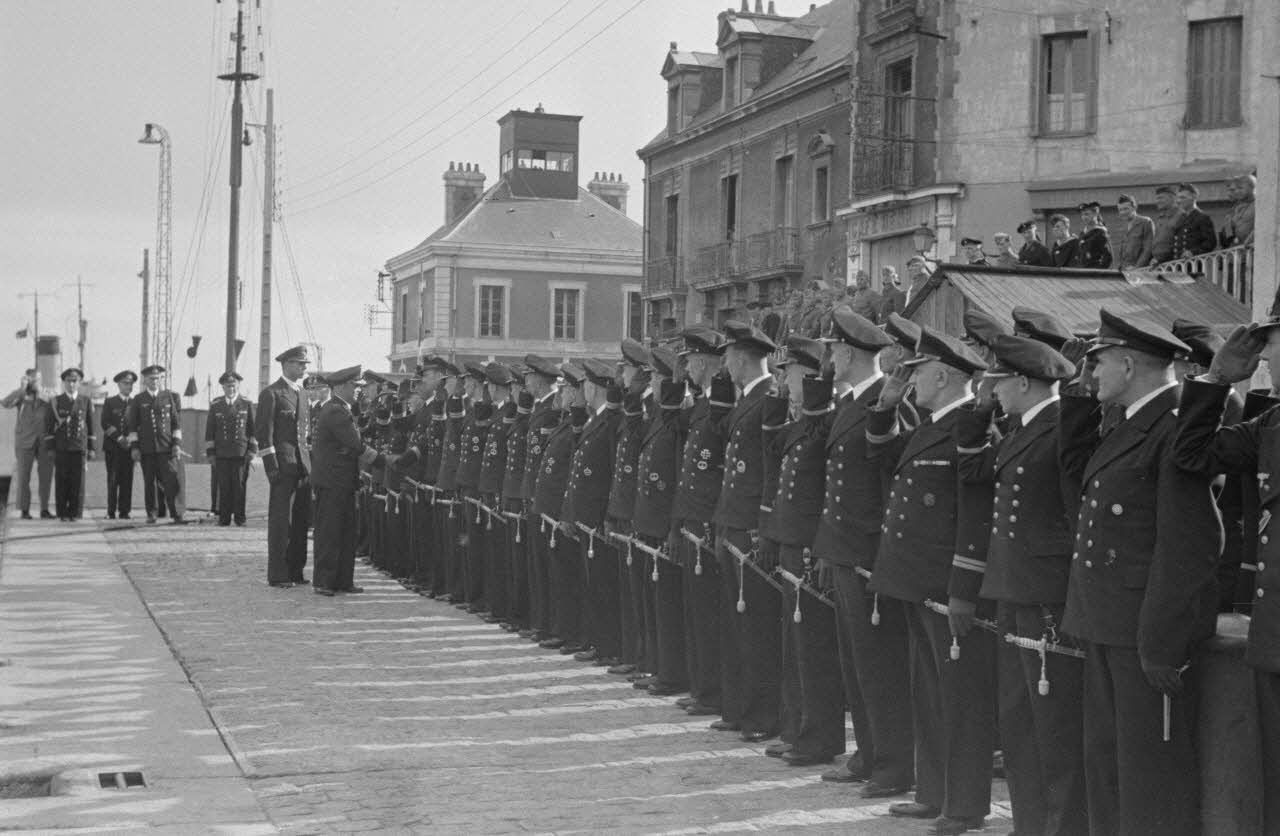 A Saint-Nazaire, l'amiral Otto Schniewind inspecte les personnels de la 7.Unterseebootsflottille peu avant l'appareillage des sous-marins U-93 et U-94.