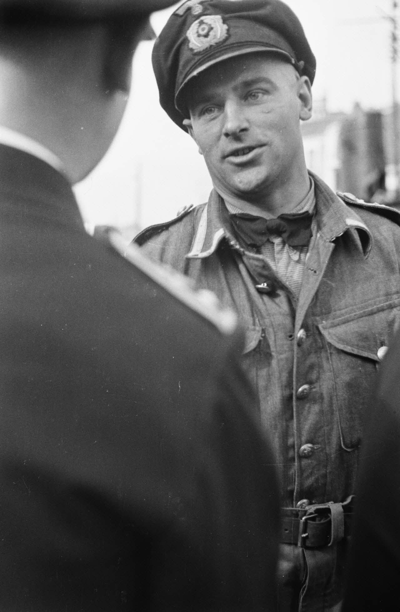 L'amiral Otto Schwiewind salue un sous-marinier d'un des U-boot (U-94 ou U-93) sur le point de partir en croisière.