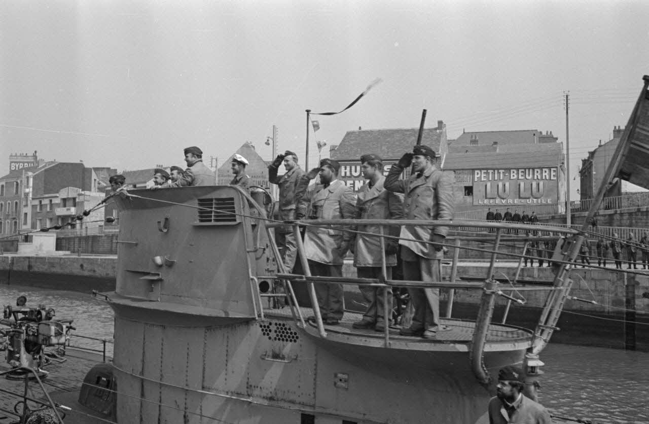 Au port de Saint-Nazaire, lors du retour du sous-marin U-552, des soldats de la Wehrmacht réservent un accueil à l'équipage.
