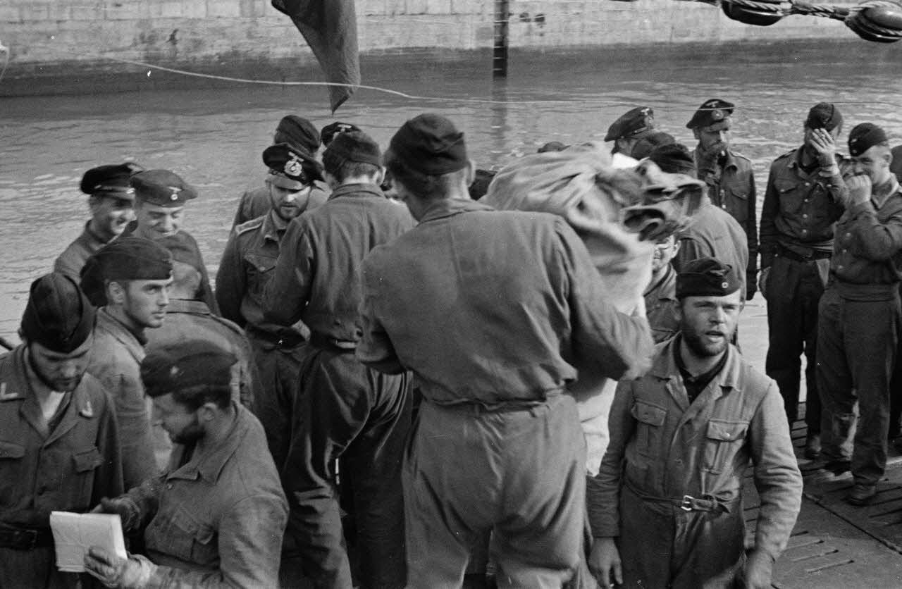 De retour au port de Saint-Nazaire, un équipage de U-Boot est accueilli par le capitaine de corvette (Korvettenkapitän) Herbert Sohler, représentant de la 7.Unterseebootflottille.