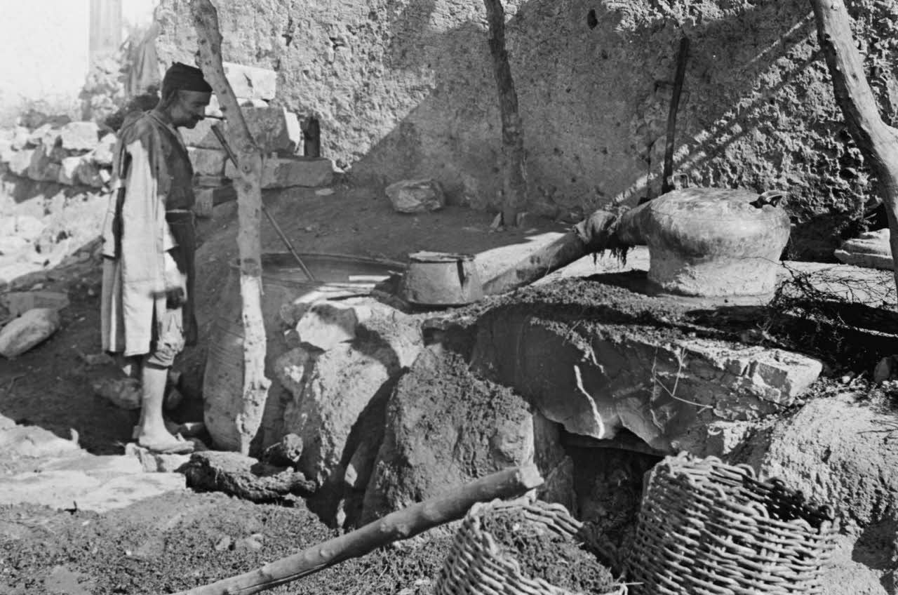 Xidas, ici aussi des soldats de la Luftwaffe sont hébergés en raison du terrain d'aviation tout proche. L'église et les oliviers du village. Fabrication (distillation) d'alcool. Un soldat de la Luftwaffe goûte le Schnaps. Des crétoises filent de la laine de mouton.