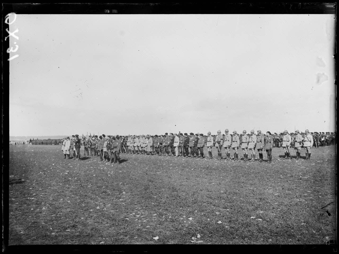 Abainville (Meuse), revue de la Division de chasseurs de Pouydraguin. Remise de décorations par le général Pétain. [légende d'origine]