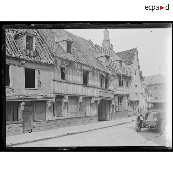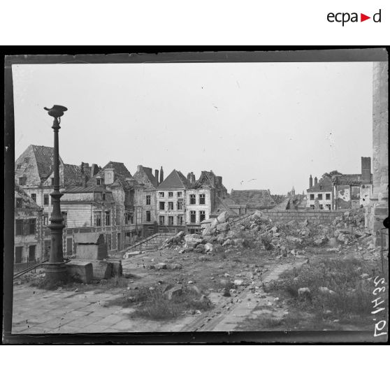 Abbeville, place Sainte-Catherine. Maisons bombardées.