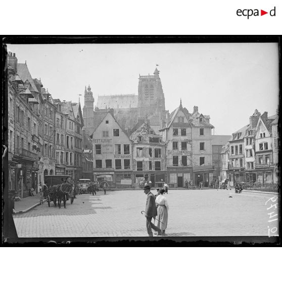 - A Abbeville (Somme, début août 1918, LO 1465 à LO 1486), des bombardements ont détruit des habitations anciennes. La cathédrale demeure intacte. Une équipe des sapeurs-pompiers de Paris est présente pour lutter contre les incendies (LO 1485). Le sous-préfet d'Abbeville pose devant l'opérateur (LO 1482).
