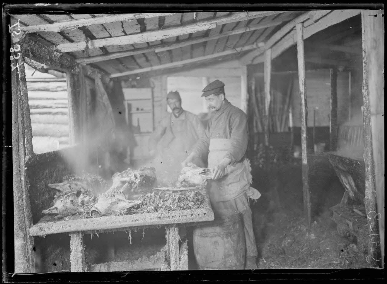 Ablis-Paray, Seine-et-Oise, entrepôt et transformation des issues et déchets du service des subsistances militaires. Désossage des têtes. [légende d'origine]