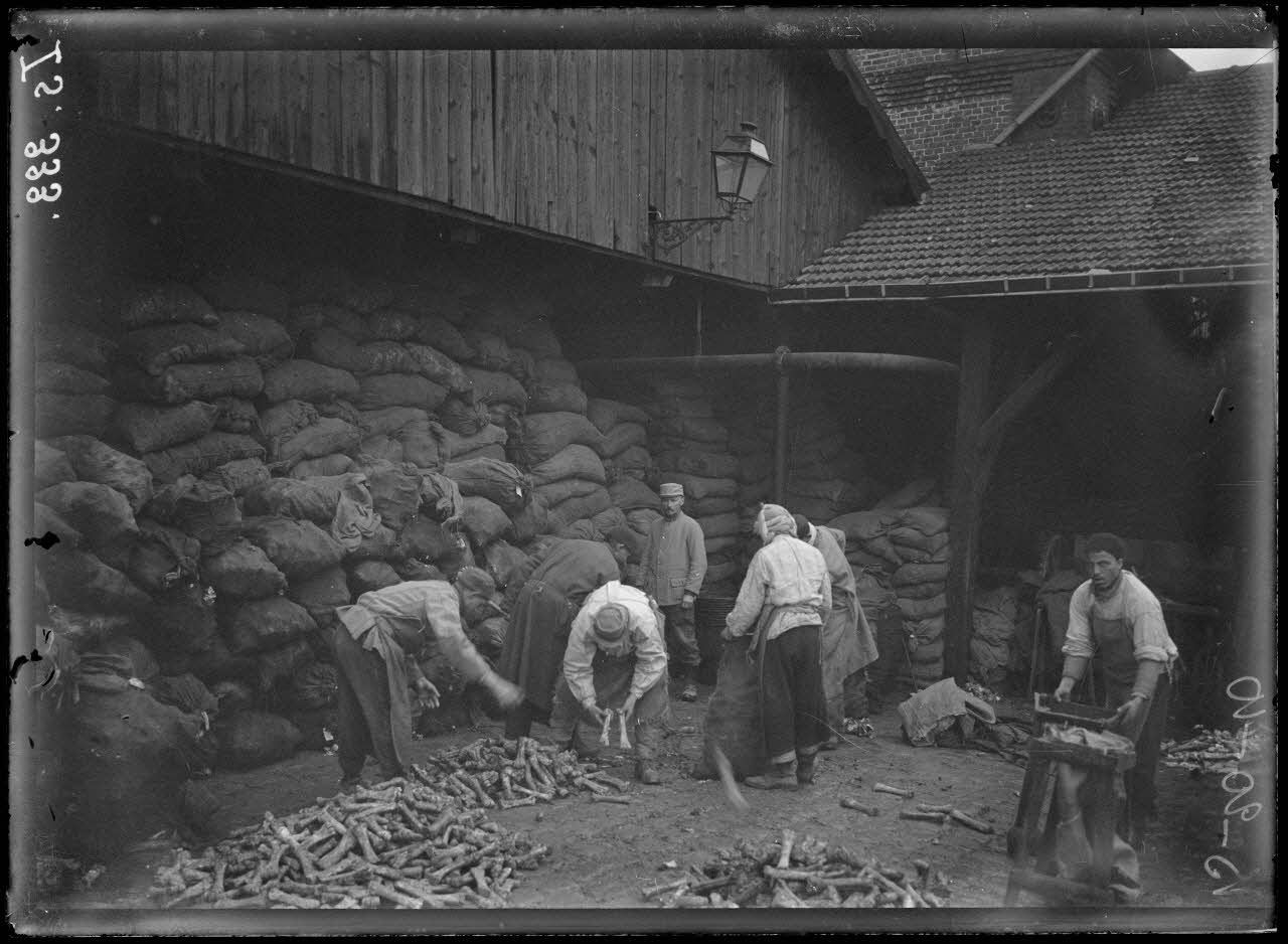 Ablis-Paray, Seine-et-Oise, entrepôt et transformation des issues et déchets du service des subsistances militaires. Arrivée des matières du front.