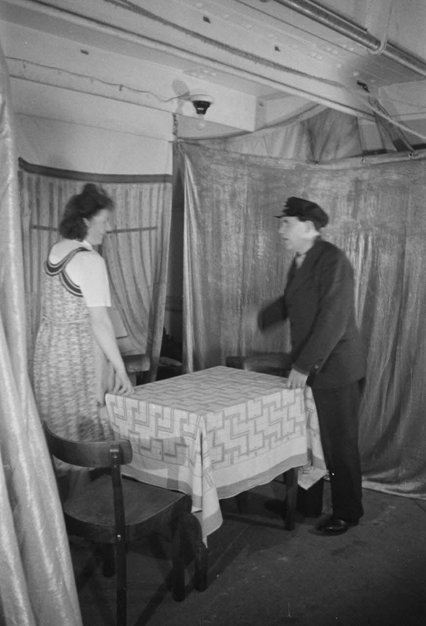 Acteur et actrice lors d'une représentation théâtrale à bord d'un dragueur de mines de la marine allemande (Kriegsmarine).
