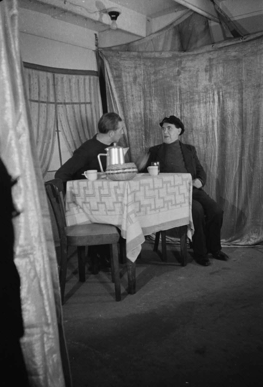 Acteur et actrice lors d'une représentation théâtrale à bord d'un dragueur de mines de la marine allemande (Kriegsmarine).