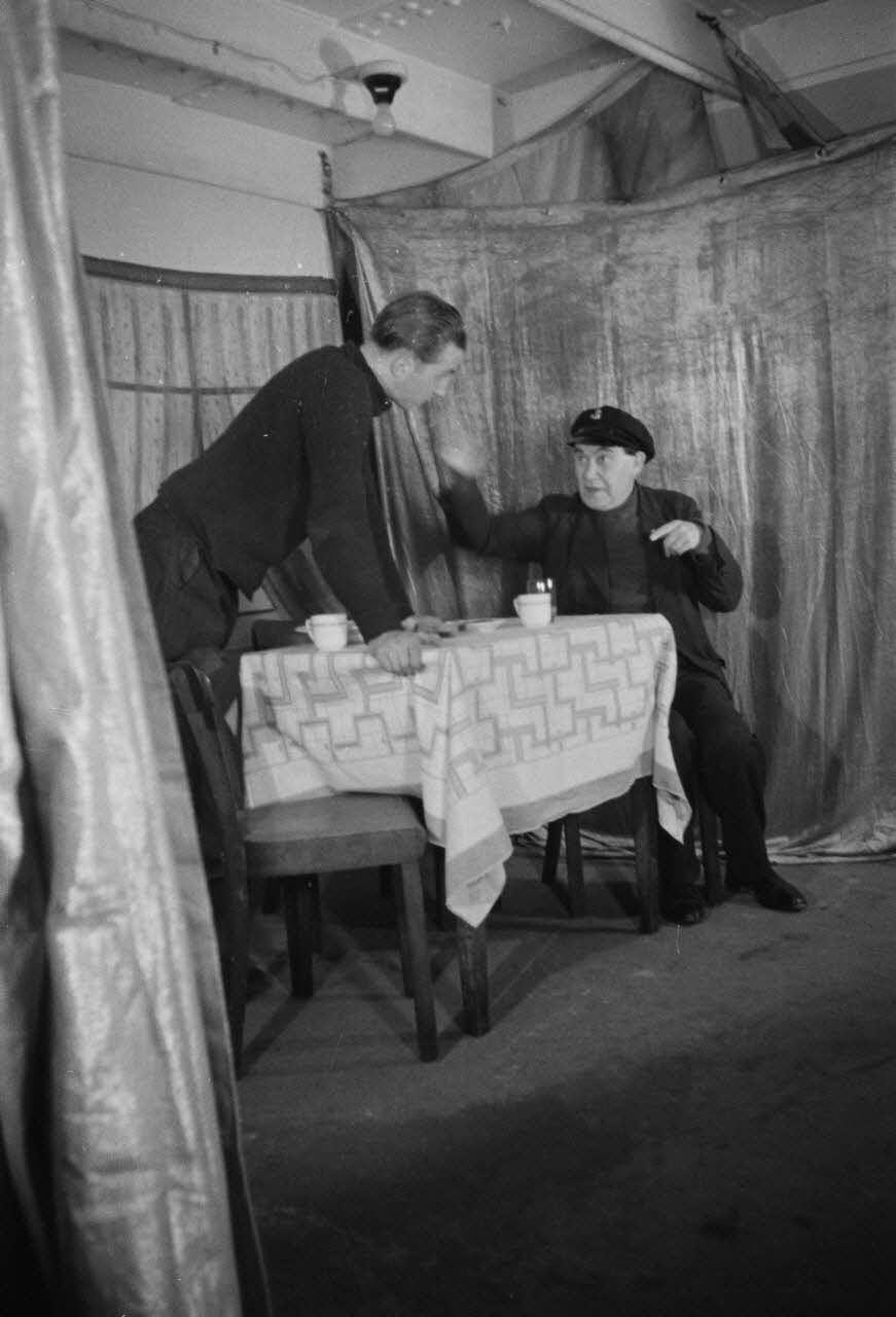 Acteurs lors d'une représentation théâtrale à bord d'un dragueur de mines de la marine allemande (Kriegsmarine).