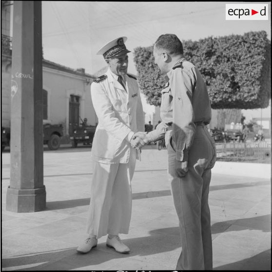 Un préfet en visite à Lourmel dans laquelle est basée la 29e division d'infanterie, marche dans la ville (R48, R49). Rencontre avec des officiers (R50, R51). Dans les rues de Lourmel, un civil fait une annonce à l’aide d’un haut-parleur (R52 à R54). Enfants photographiés dans la rue à l’occasion de la visite du préfet (R56 à R58). Photographie de groupe de civils et de militaires rassemblés près d’une station-service (R59).