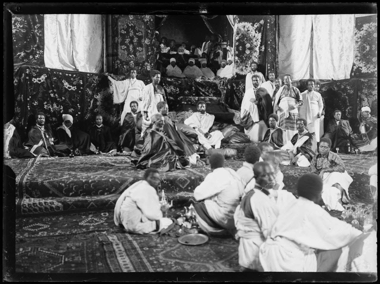 Addis Abéba. La Reine et sa suite assistant au Guébeur près du Palais. [légende d'origine]