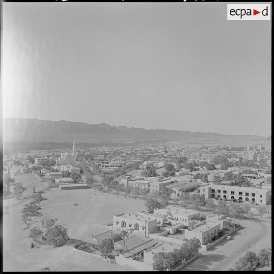 Vues aériennes de Colomb-Béchar, avec ses immeubles en construction, d'Adrar, de Timimoun et de la palmeraie de Taghit.
