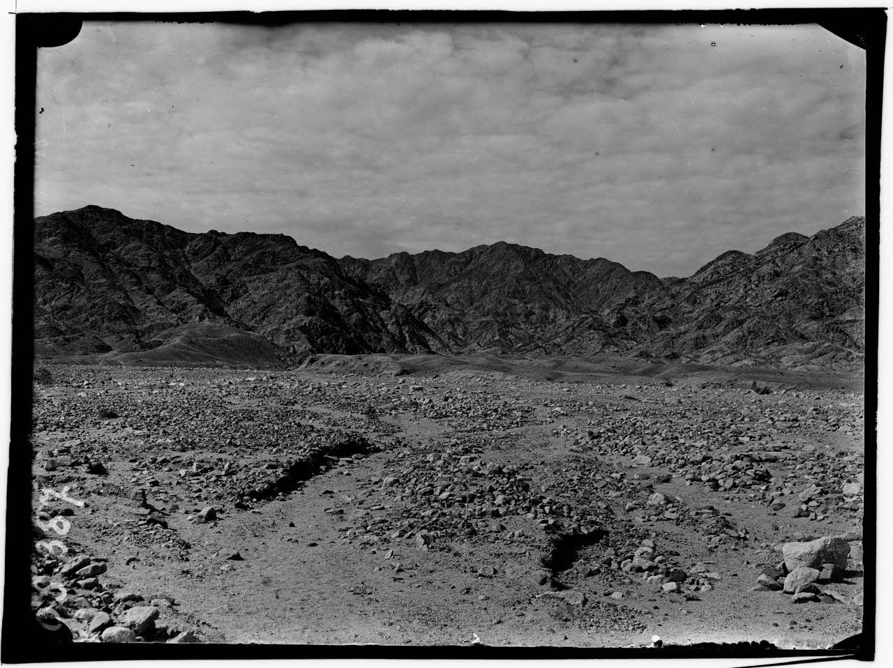 Akaba (Arabie). Le terrain d'alluvions au pied de la montagne granitique.