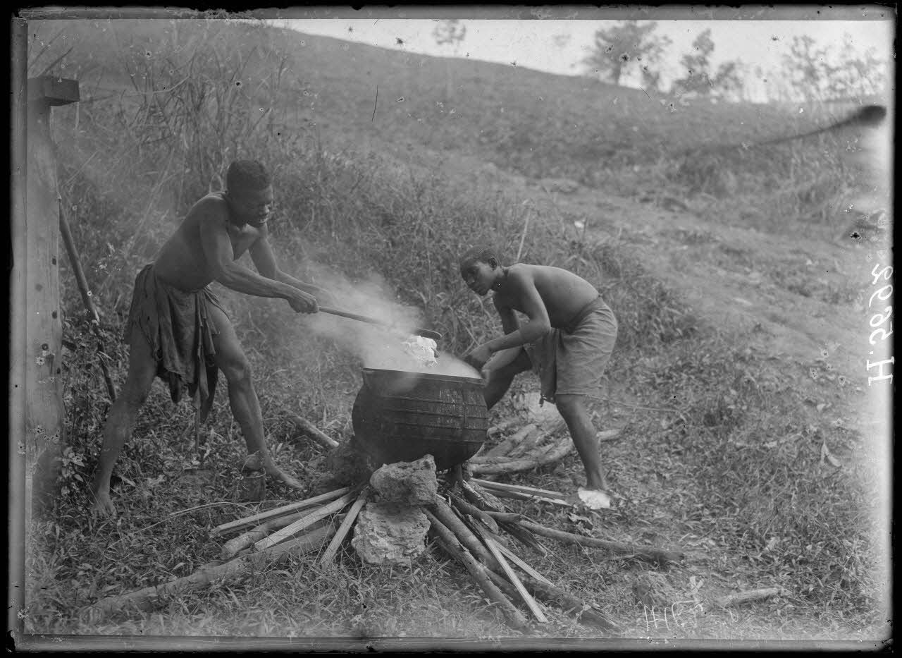Akonolinga. Coagulation du latex du caoutchouc. [légende d'origine]
