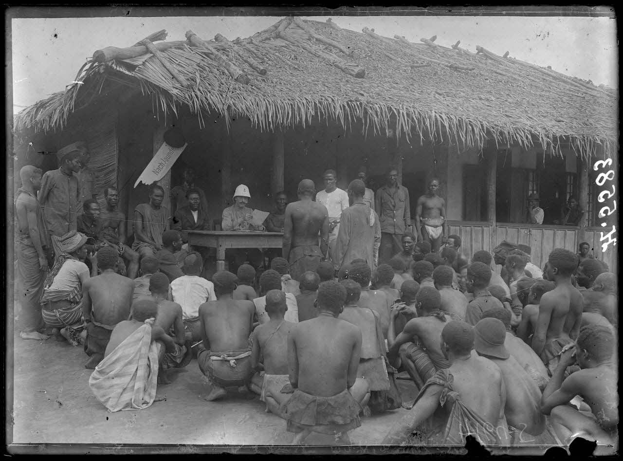 Akonolinga. Tribunal indigène. [légende d'origine]