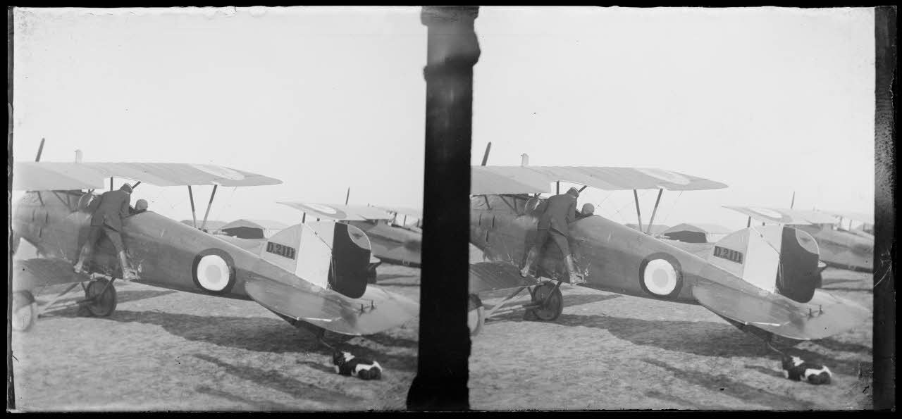 D169-13-13. Lieutenant Luc-Pupat prenant son départ pour effectuer un vol sur Fokker ayant atterri au Plessis Belleville en octobre 1916.