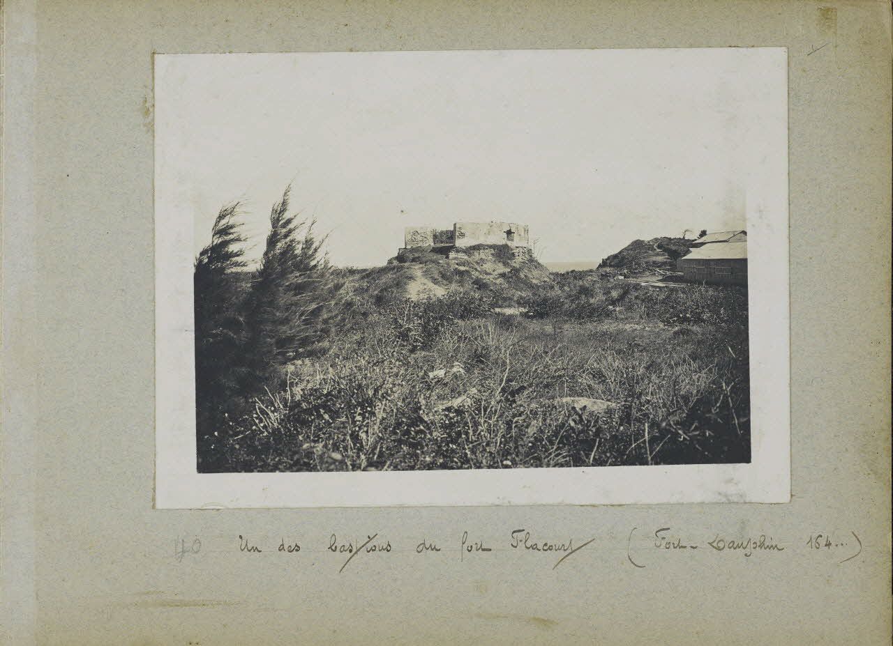 Un des bastions du fort Flacourt (Fort Dauphin) à Tôlanaro. Notes : les photographies rassemblées et décrites dans ce reportage sont issues d’un album de photographies intitulé « Madagascar 1 » de format 26x19 cm dont les reproductions des pages sont disponibles dans ce reportage.