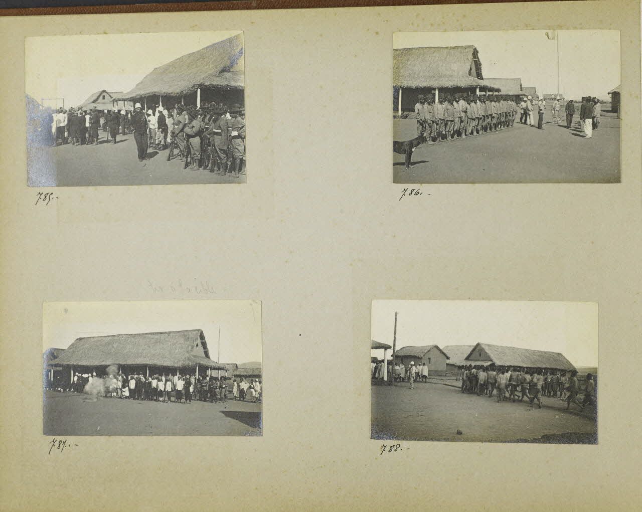 Exercice de tir, revue des troupes de tirailleurs malgaches. Notes : les photographies rassemblées et décrites dans ce reportage sont issues d’un album de photographies intitulé « Madagascar 1 » de format 27x18,5 cm dont les reproductions des pages sont disponibles dans ce reportage.