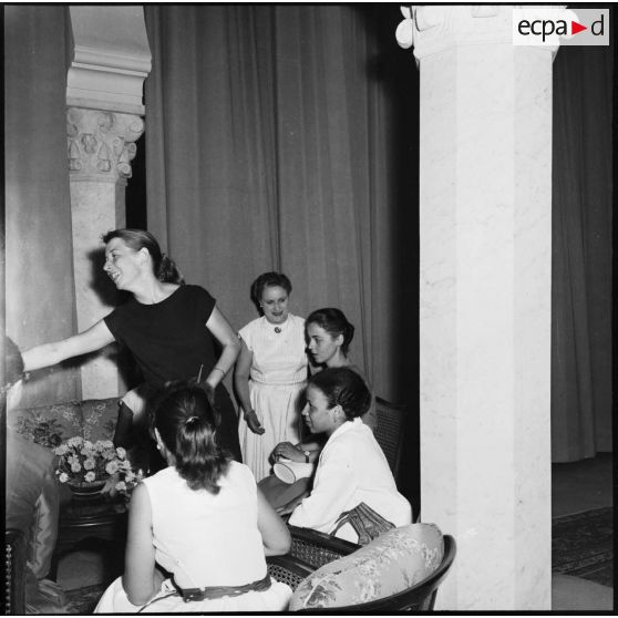 Visite d'étudiantes d'une section administrative urbaine (SAU) chez madame Lacoste, épouse de Robert Lacoste.