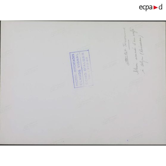 Note : à son entrée dans les collections de l'ECPAD, le négatif était conditionné dans une pochette sur laquelle il était inscrit "Algérie : surveillance de la Casbah, attentats".
