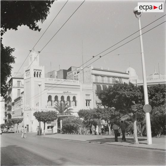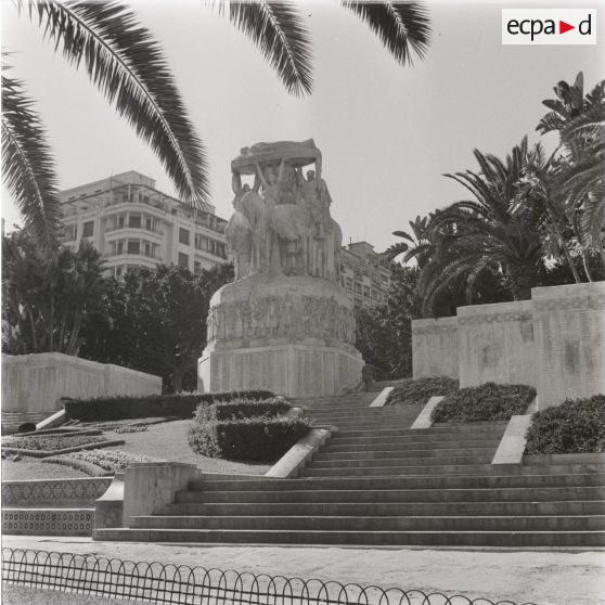 [Algérie, 1954-1962. Un rassemblement devant le Pavois, monument aux morts d'Alger construit en 1928 par le sculpteur Paul Landowski (1875-1961).]