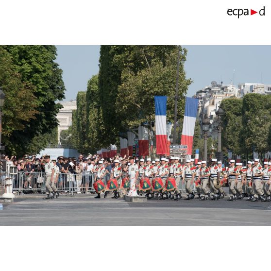 Défilé des pionniers de la Légion étrangère sur les Champs-Elysées, lors du défilé militaire du 14 juillet 2018 à Paris.