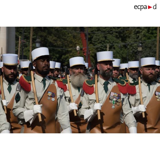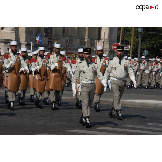 Défilé de la musique de la Légion étrangère sur les Champs-Elysées, lors du défilé militaire du 14 juillet 2018 à Paris.
