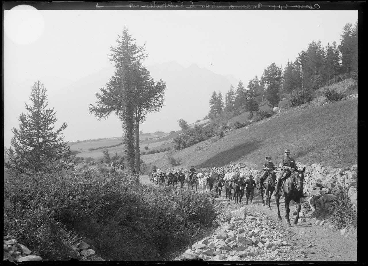 D193-1-987 Alsace 1914, un convoi muletier de ravitaillement