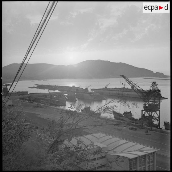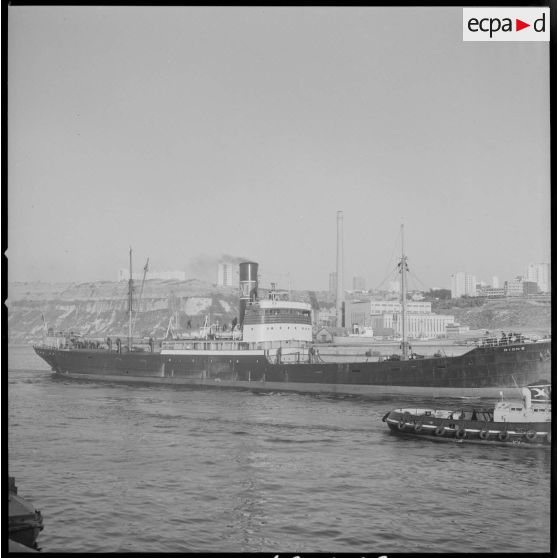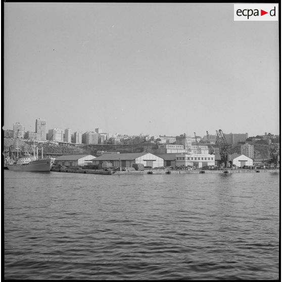 Fonds photographique de Arthur Smet (1932 - ). Le port d'Oran et l'amarrage du paquebot Kairouan.