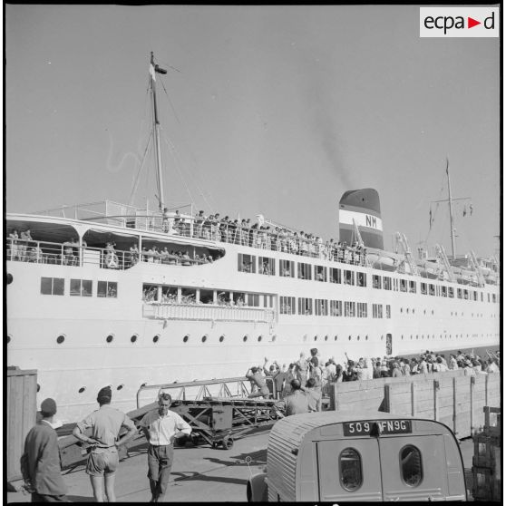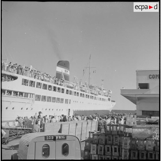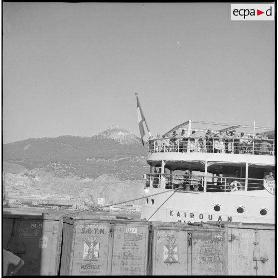 Note : Le Kairouan est un paquebot de la Compagnie de navigation mixte construit en 1939 et mis en service à partir de 1951. Ce navire est notamment utilisé par l'armée pour transporter les appelés du contingent de Marseille à Alger et Oran jusqu'en 1962.
