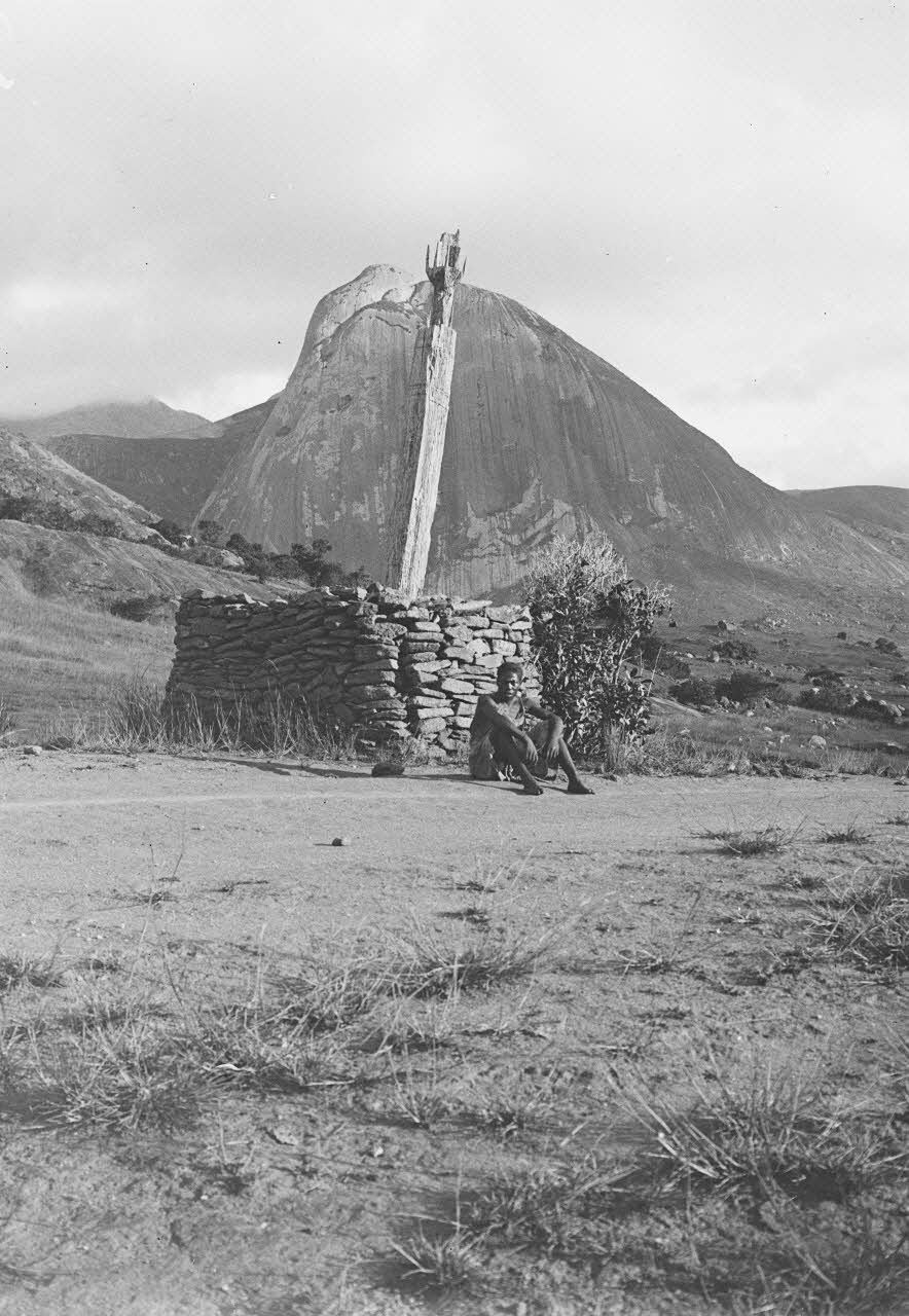 Un Malgache assis devant un tombeau près du rocher d'Ambatomainty.