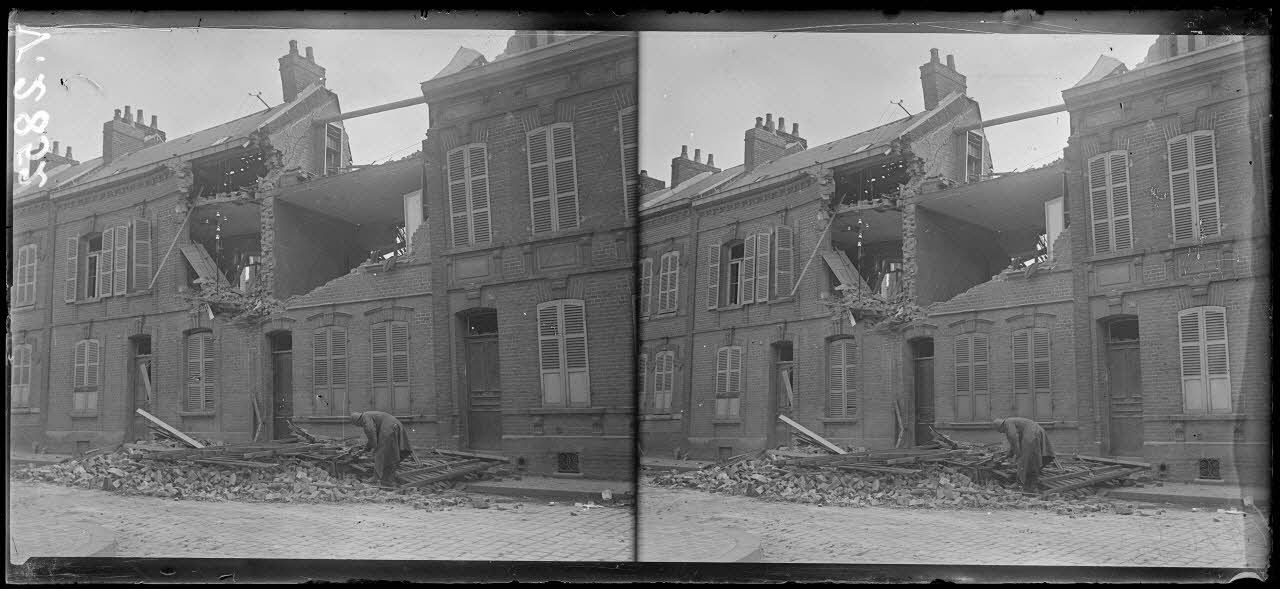 - Dans la ville d'Amiens (Somme, 22/06/1918, V 2848 à V 2854), place Gambetta, l'hôtel du Périgord est détruit à l'instar de nombreuses habitations situées rues Lourendeau, Cozette, Latour, rue des Jacobins. Les archives de la mairie sont évacuées par crainte d'être détruite lors d'un bombardement (V 2864 à V 2867).