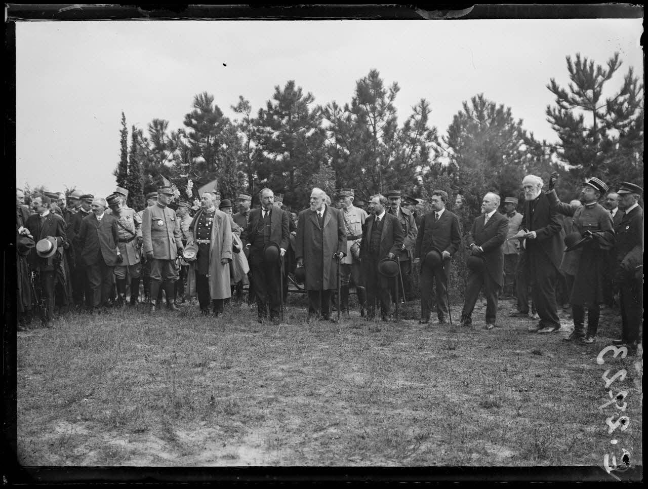 Anniversaire de la Bataille de la Marne. Le cortège officiel sur le terrain, au centre le Maréchal Joffre.