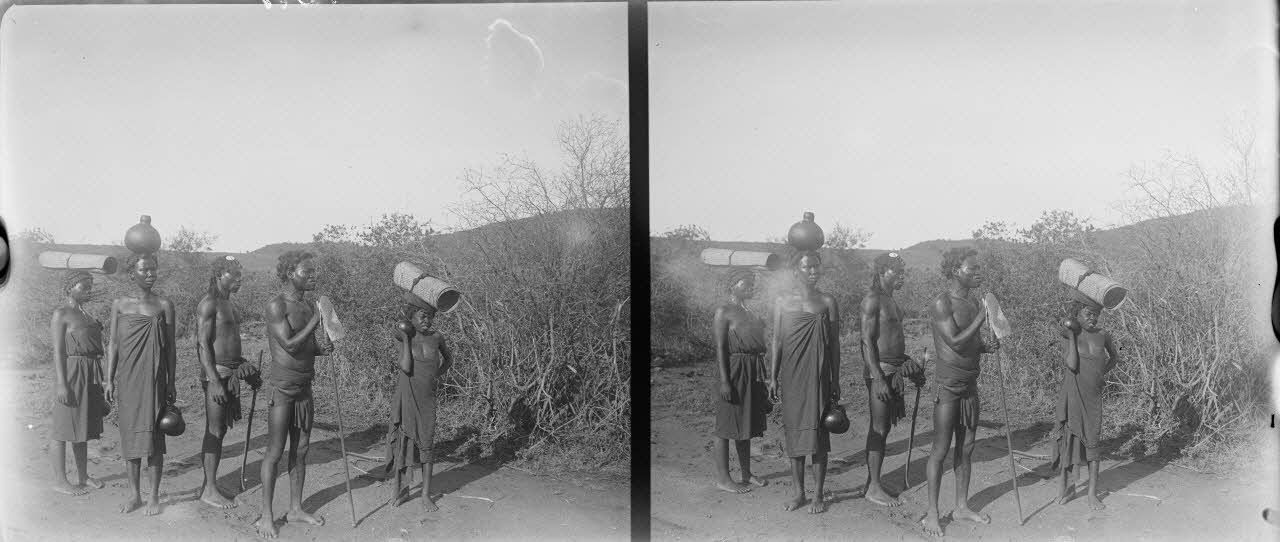 Antandroy en voyage. Leurs bagages! Calebasses pour l'eau, des nattes comme lits. [légende d'origine]