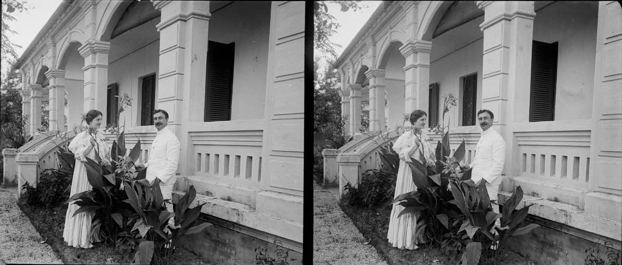 (Août 1908). Visite à Can-Do près d'Hanoï (20 k[ilomètres]) chez m[onsieur] et m[adam]e Laborde administrateur-adjoint des colonies. 1428. Devant la maison. [légende d'origine]